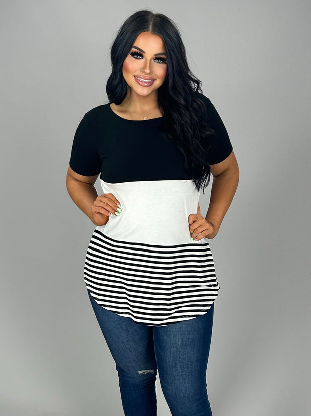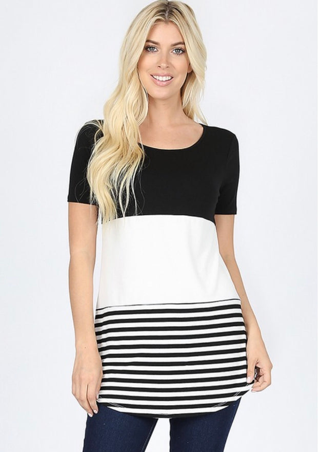 SALE!! CP-B {Up & Away} Black/White Striped Contrast Tunic