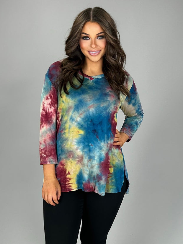 SALE! PQ-Z {Born Again} Hi-Lo Multi Tie-Dye Top with V-Neck