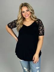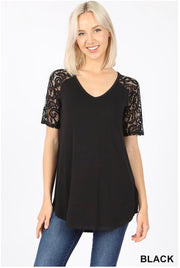 SALE!! SSS-Y {Lovely As Ever} Black V-Neck Top W/ Lace Sleeve Detail