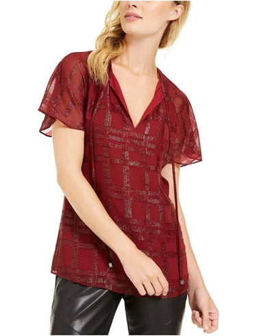 SD-B M-109 {Michael Kors} Burgundy V-Neck Top Retail $110.00