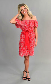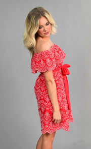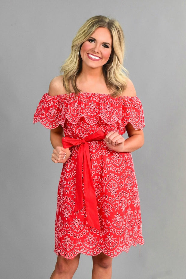 OS-N {Sassier Than Ever} Red Dress with White Eyelet Detail