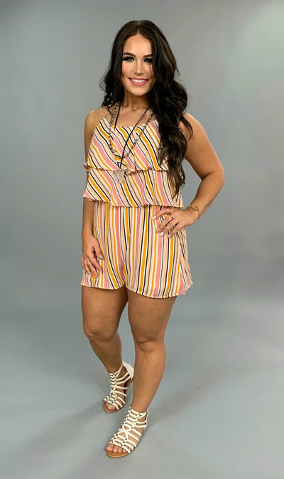 RP-A {Find Me In Hawaii} Striped Romper Ruffle Yoke