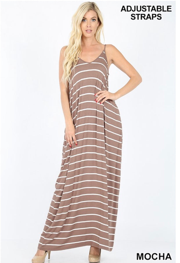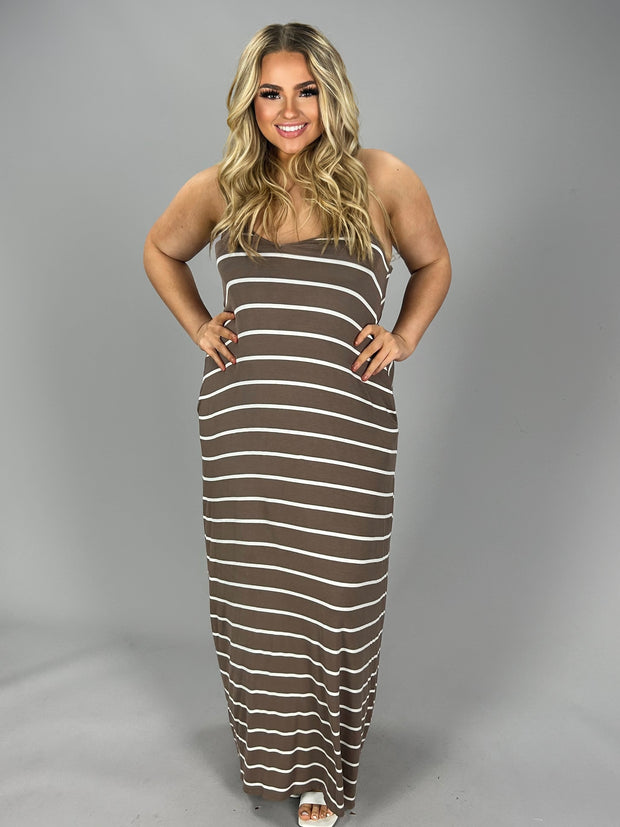 LD-M {New Groove} Mocha/Ivory Striped Maxi Dress