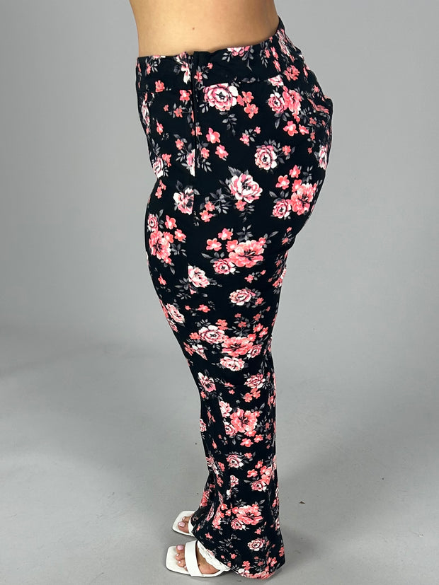 BT-U {Color Me Happy} Black Floral Print Pants W/ Flare Bottom L