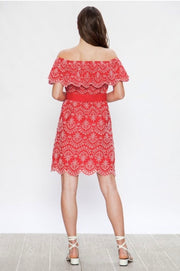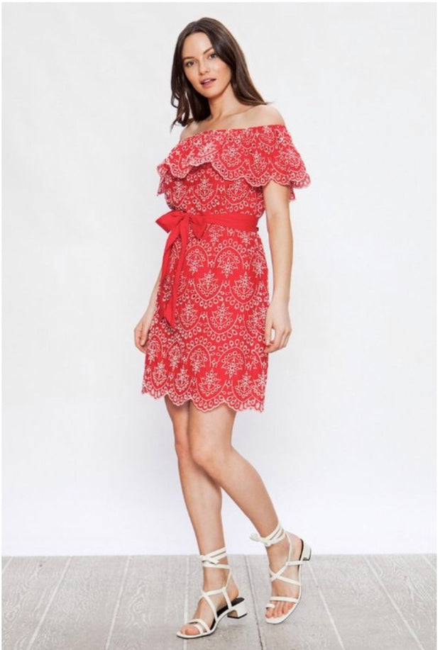 OS-N {Sassier Than Ever} Red Dress with White Eyelet Detail