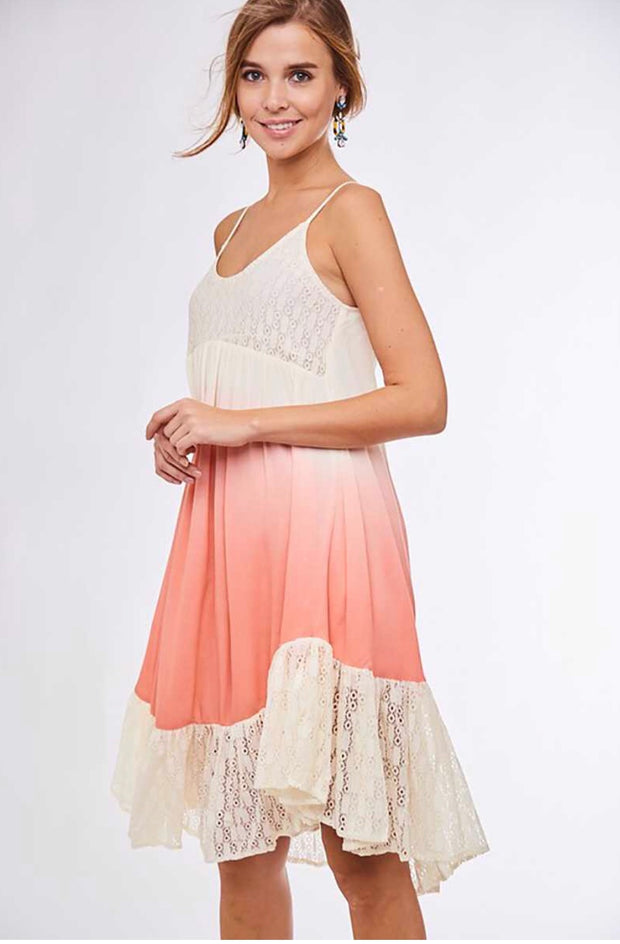 SV-D {A Perfect Passion} Lined Coral Dress w/ Lace Detail