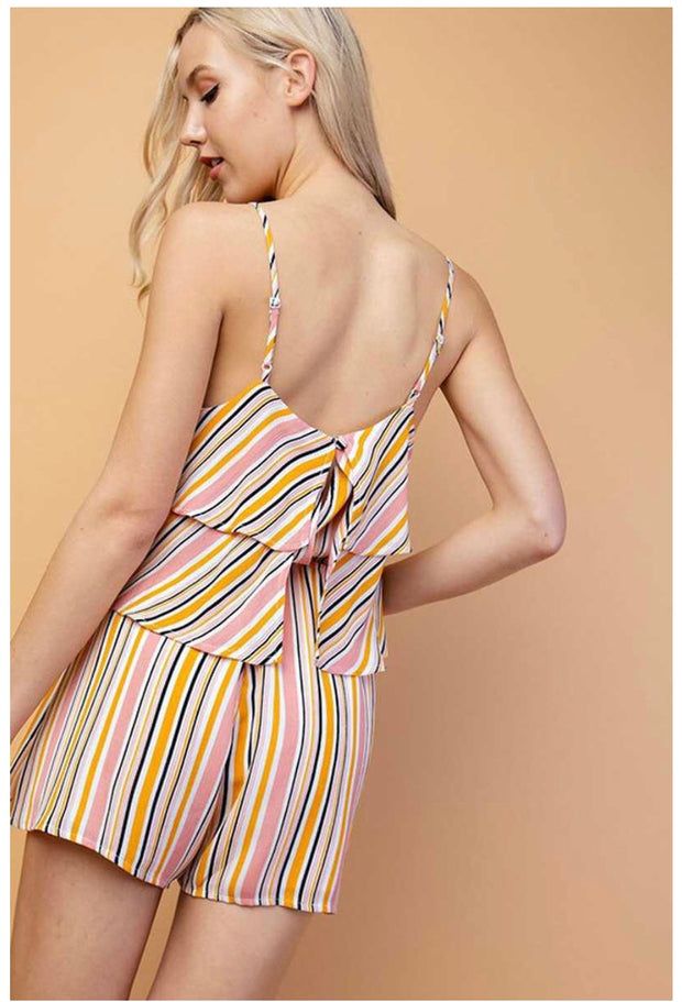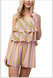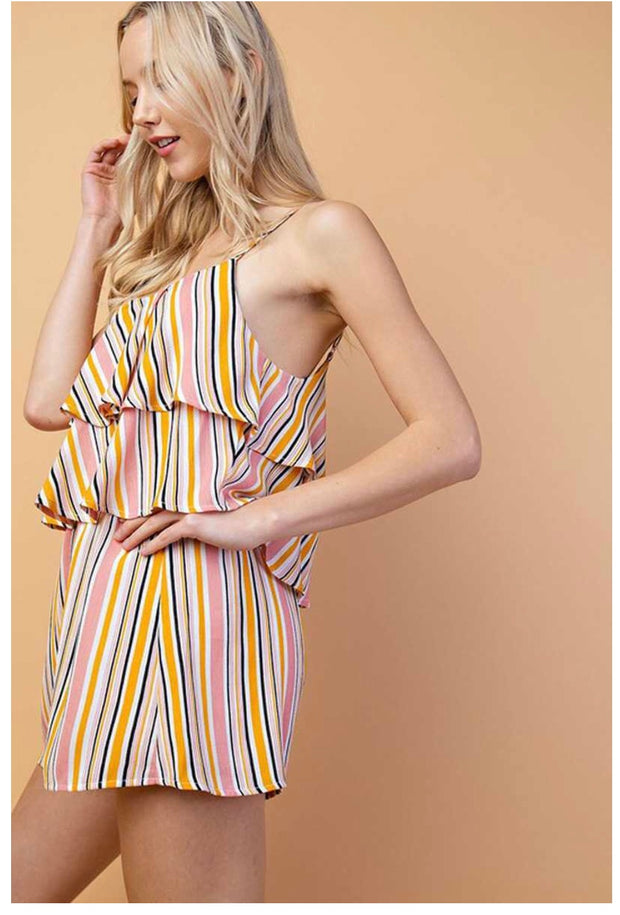 RP-A {Find Me In Hawaii} Striped Romper Ruffle Yoke