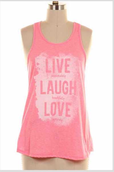 GT-B {Live Laugh Love} Coral Sleeveless Graphic Tank Top