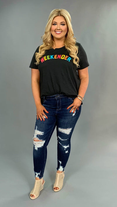 {The Weekender} Black T-Shirt with Multi-Color Letters Plus Size
