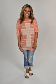 SALE!! GT-T {God Only Knows} Peach Top with Crochet Lace Cross