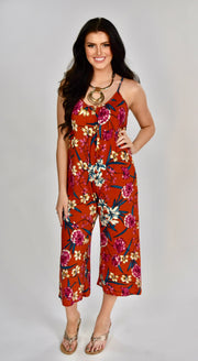 RP-E {Happy Today} Burnt Orange Floral Print Romper