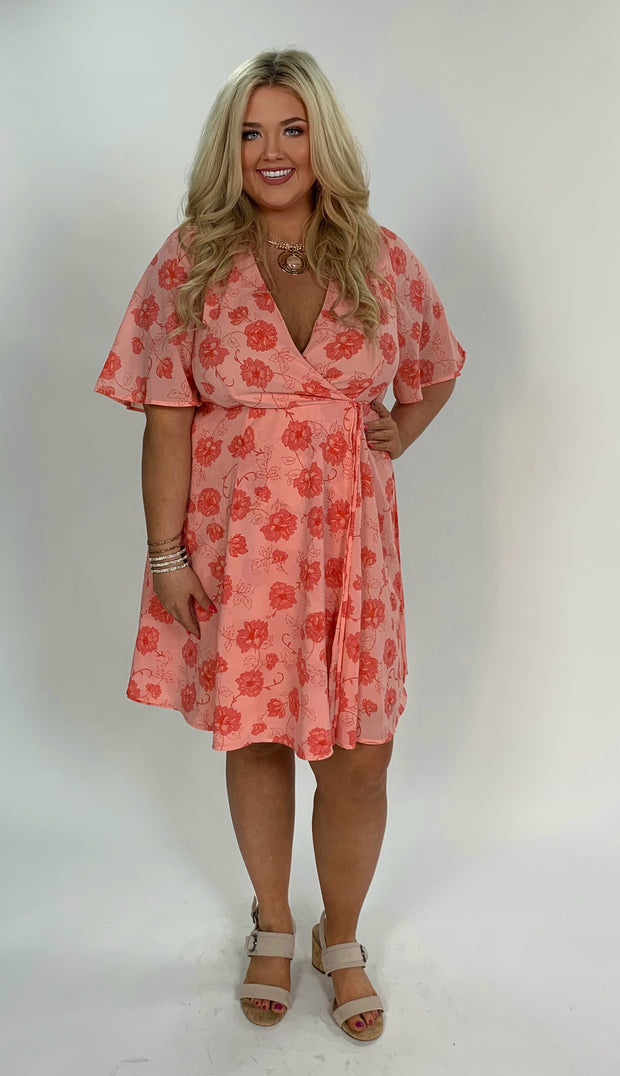 PSS-C {Truly Grateful} Peach V-Neck Floral Print Dress