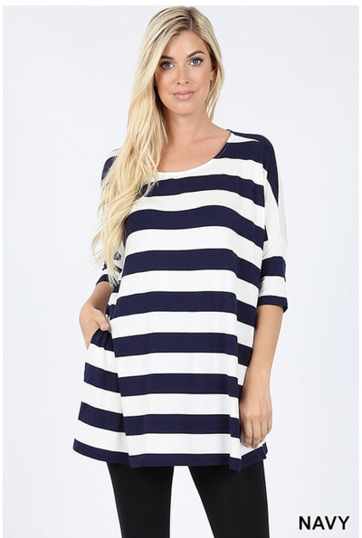 PSS-P {Strolling Along} Navy/Ivory Striped Tunic W/ Pockets