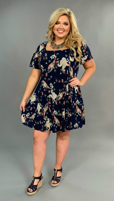 PSS-E {Oh My Darling} Navy/Coral Floral Dress w/ Ruffle Detail