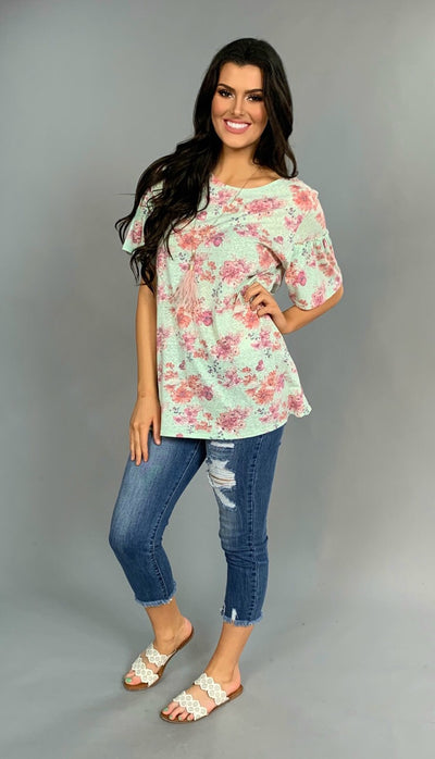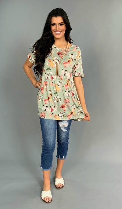 SALE!! PSS-T {More Than A Feeling} Pistachio Floral Print Tunic