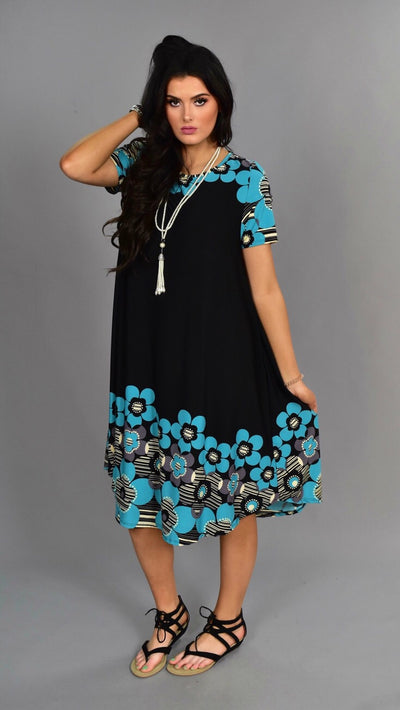 {Something About You} Black/Teal Floral Midi Dress Plus Size