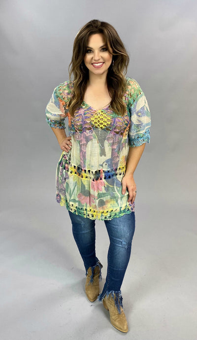 PSS-L {Color Me Wonderful} Multi Color Floral Knit Tunic