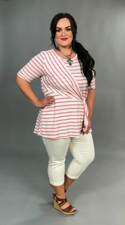 PSS-A {Surprise Me} Pink Striped with Yoke-Tie Detail Top