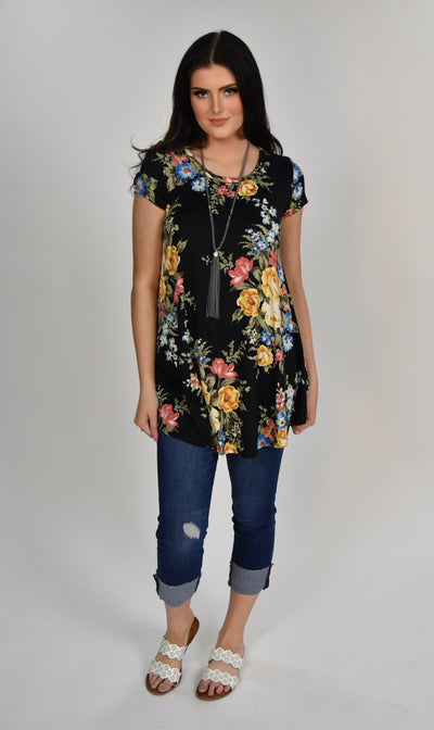 SALE!! PSS-A {Adored The Most} Black Floral Tunic or Dress