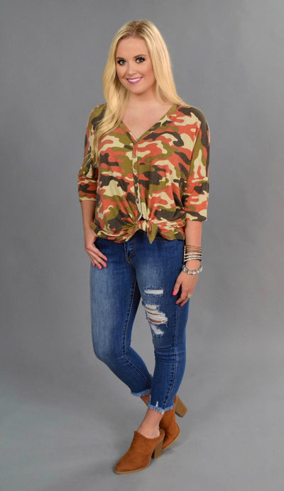 PSS-H {Coffee @ Sunrise} Rust Camo Top Buttons & Front Tie