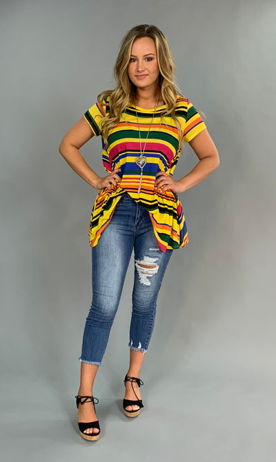 PSS-A {Give Love} Yellow Striped Short Sleeve Tunic