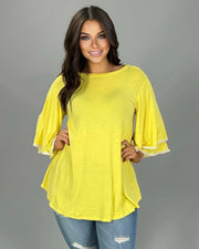 SALE!! SQ-D "UMGEE" Apricot Top 3/4 Sleeves & Sharkbite Hem