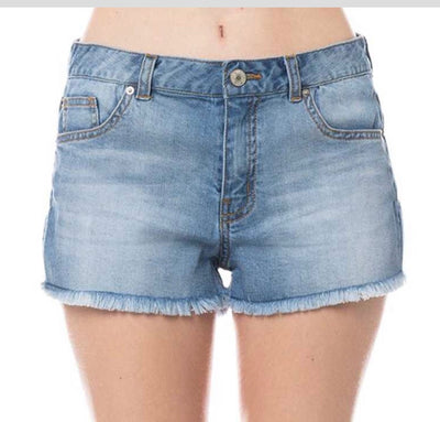 BT-W {Daytime Fun} Light Denim Shorts with Fringed Hem