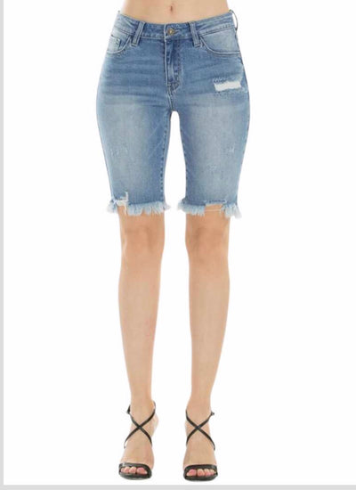 BT-A {Bad Habit} Denim Distressed Shorts with Fringed Hem