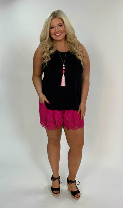 BT-B {It's Your Love} Black Shorts with Elastic Crochet Waistband