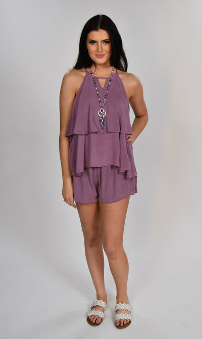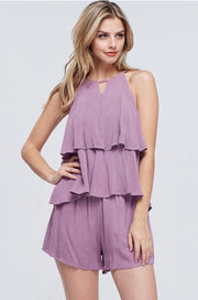 SET-C {Perfect Option} Lavender Ruffle Top W/ Shorts
