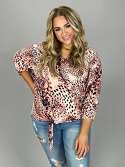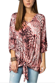 PQ-A {Call Of The Wild} Coral Leopard Top with Front Tie