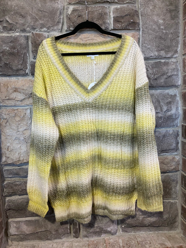 SALE! 16 PLS-M {Love Notes} Yellow Olive Striped Sweater SIZE S M L XL