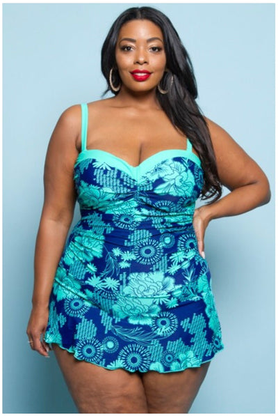 SWIM {Ready For A Cruise} Mint & Blue Skirted Swimsuit