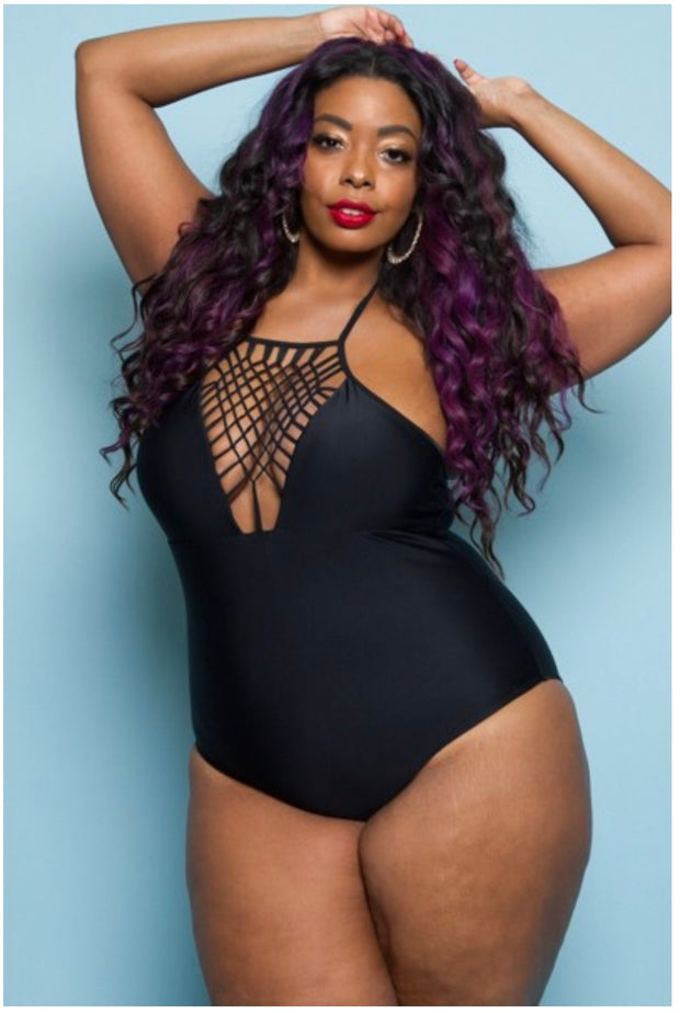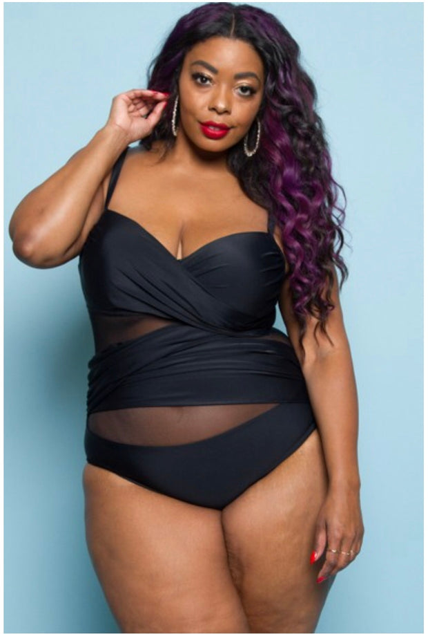 SWIM {Curvy Elegance} Black One-Piece Swimsuit