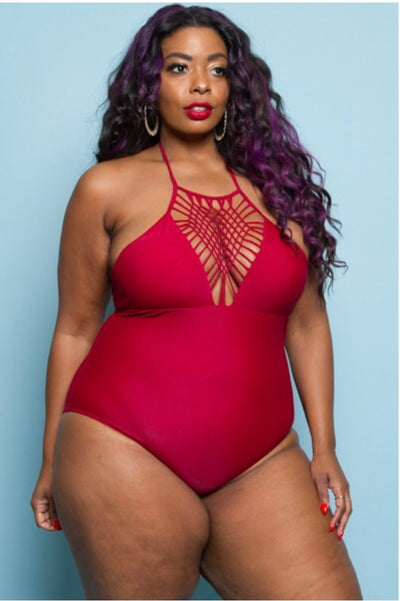 SWIM {Curvy Elegance} Burgundy One-Piece Swimsuit