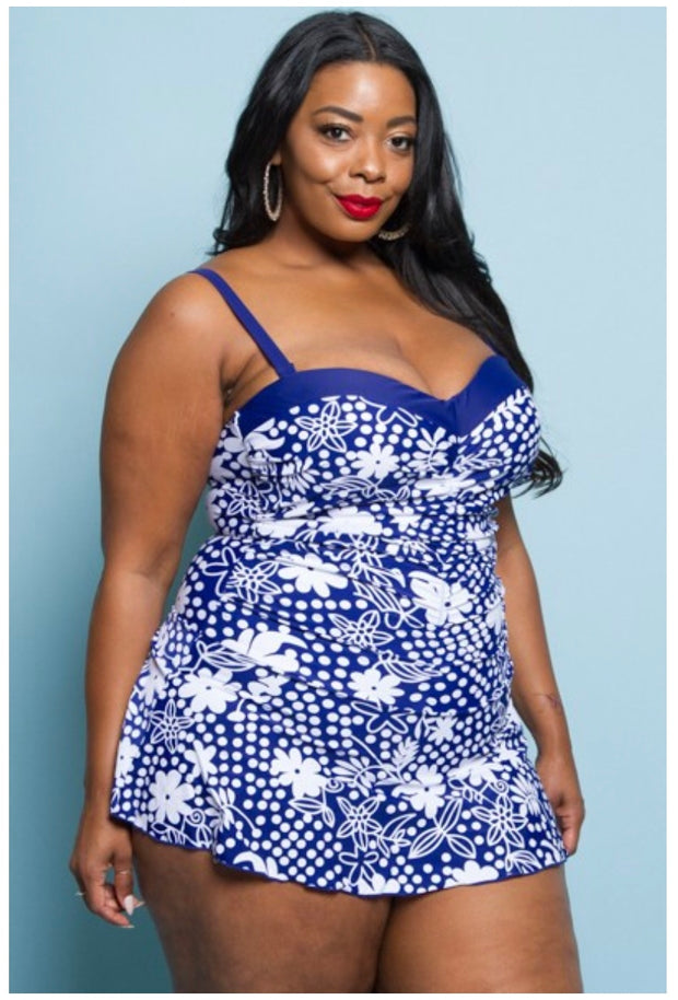 SWIM {Ready For A Cruise} Blue & White Skirted Swimsuit