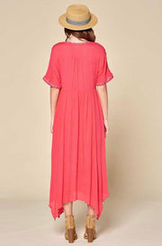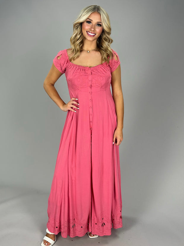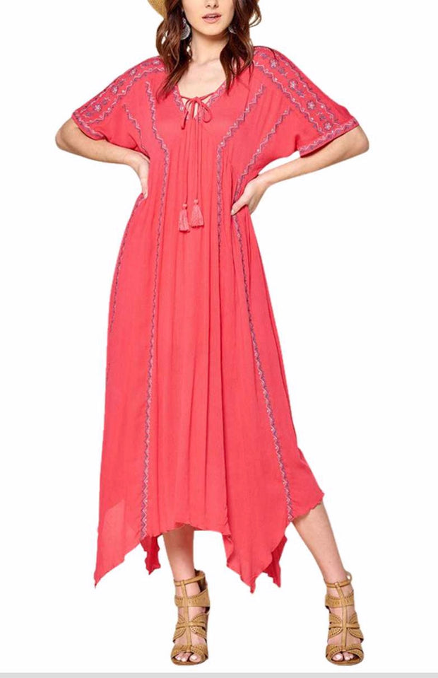 LD-A {Charmed Life} Coral Dress with Embroidery Detail