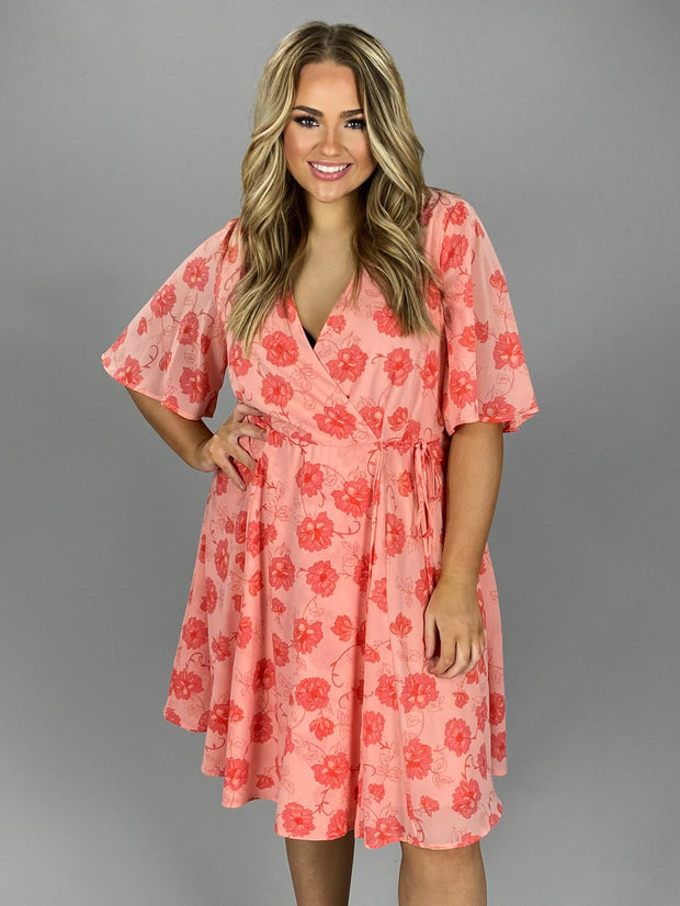 PSS-C {Truly Grateful} Peach V-Neck Floral Print Dress