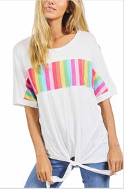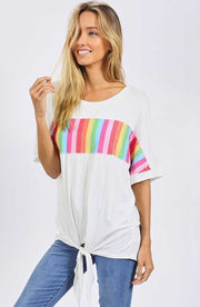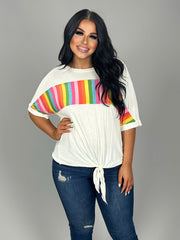 CP-H {Happy Daze} White Multi-Color Top with Front Tie