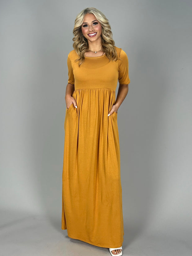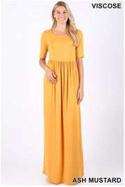 LD-E {Sun Is Shining} Ash Mustard Short Sleeve Maxi Dress