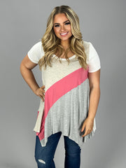 {Let's Get Lost} Gray Pocket Top with Pink/Navy Contrast Plus Size
