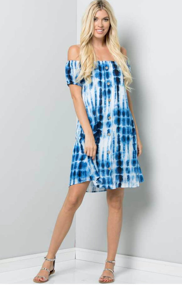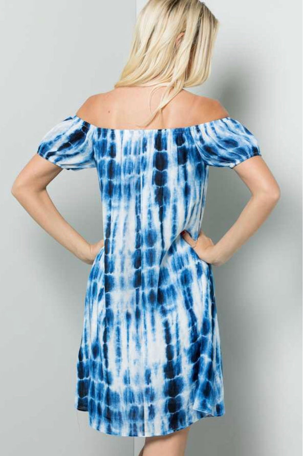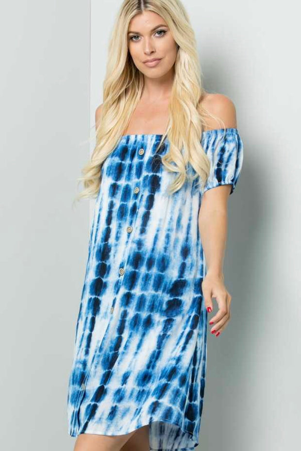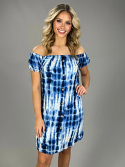 OS-B {Last One Here} Blue Bamboo Tie-Dye Print Dress