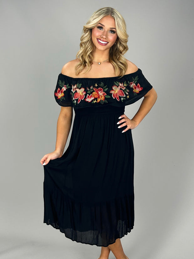 LD-J {Young Love} Black (Lined) Dress with Floral Embroidery