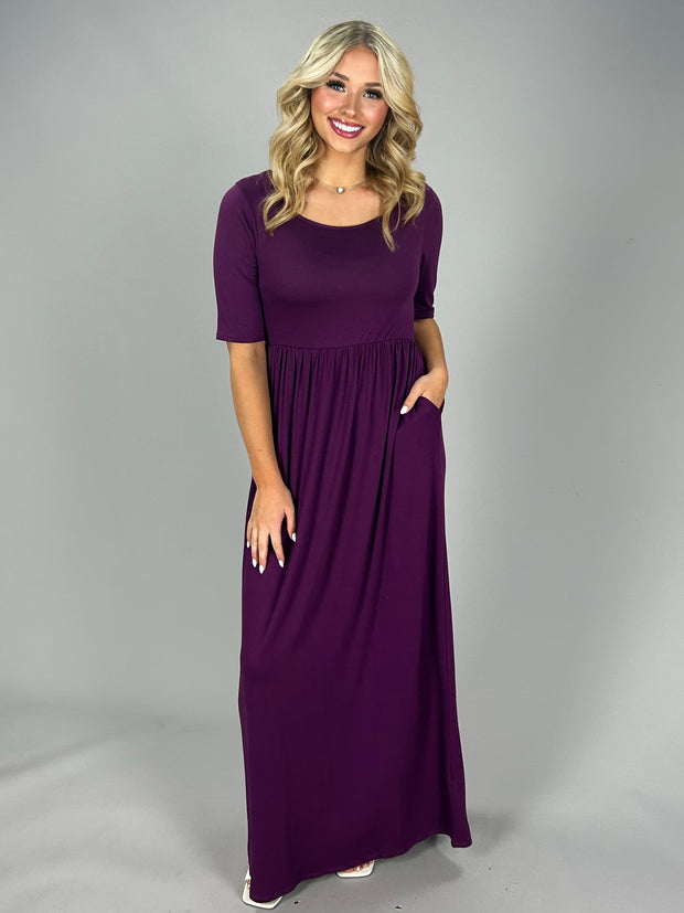 LD-C {Sun Is Shining} Plum Short Sleeve Maxi Dress