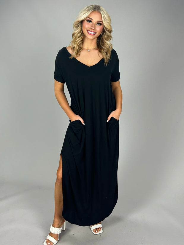 LD-M {So Far Away} Black V-Neck Maxi Dress W/ Pockets
