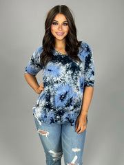 PSS-K {See Ya} BLUE Tie-Dye Print V-Neck Hi-Lo Tunic