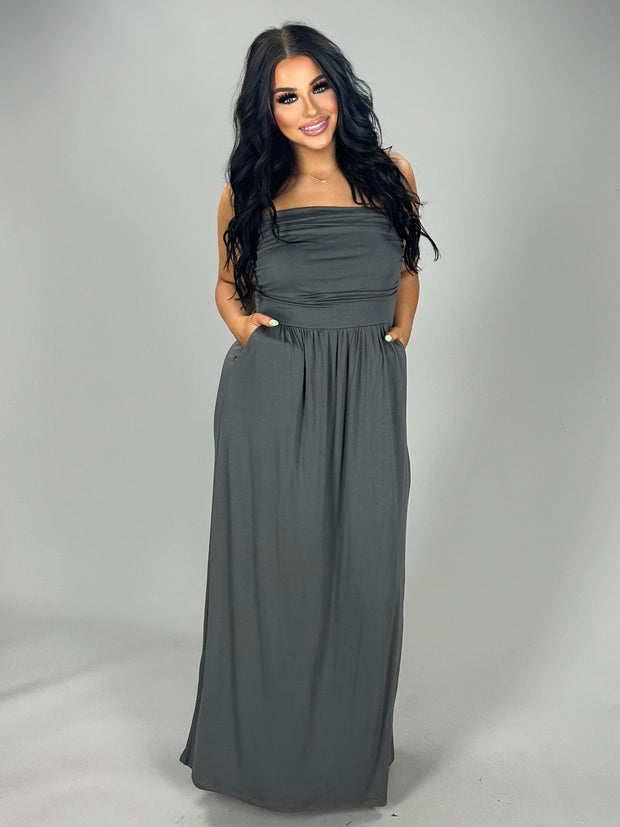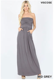 LD-F {Hot Summer Nights} Gray Strapless Maxi W/ Pockets