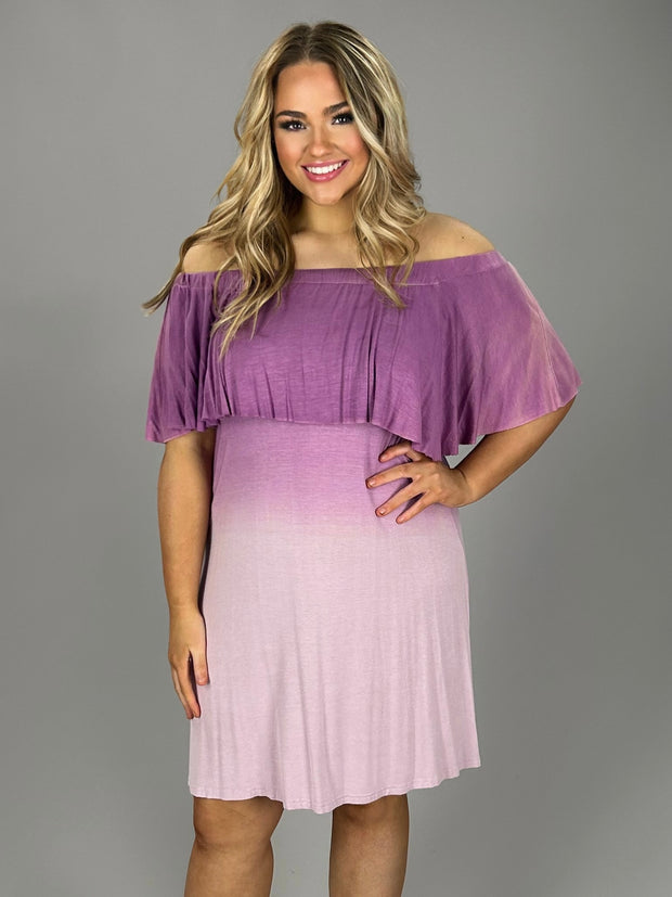 OS-A {Rumor Has It} Off-Shoulder Gradient Lavender Dress