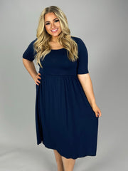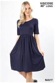 SQ-Q {Take My Hand} Navy Dress W/ Quarter Sleeves & Pockets