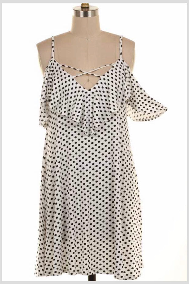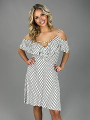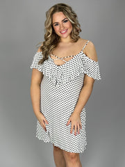 OS-J {The Show Goes On} White/Black Polka Dot Dress